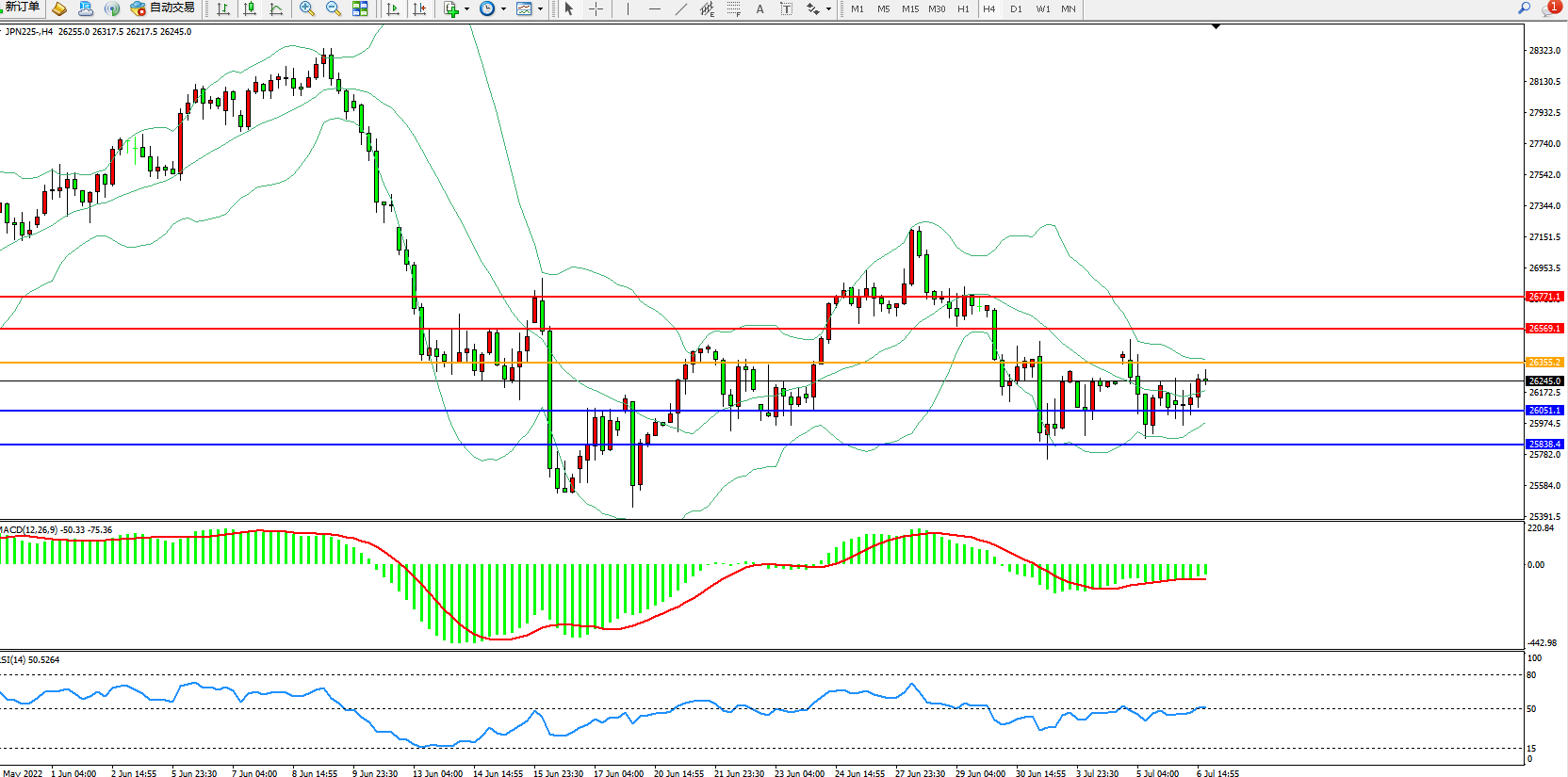 日经指数JPN225——4小时K线图显示: