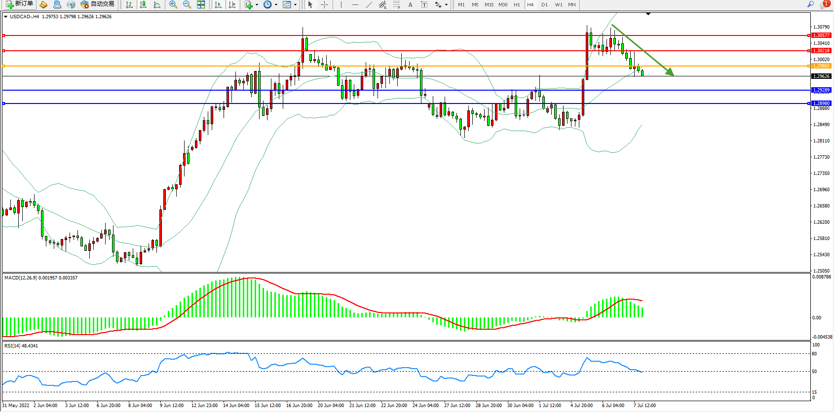 美元加元USDCAD——4小时K线图显示: