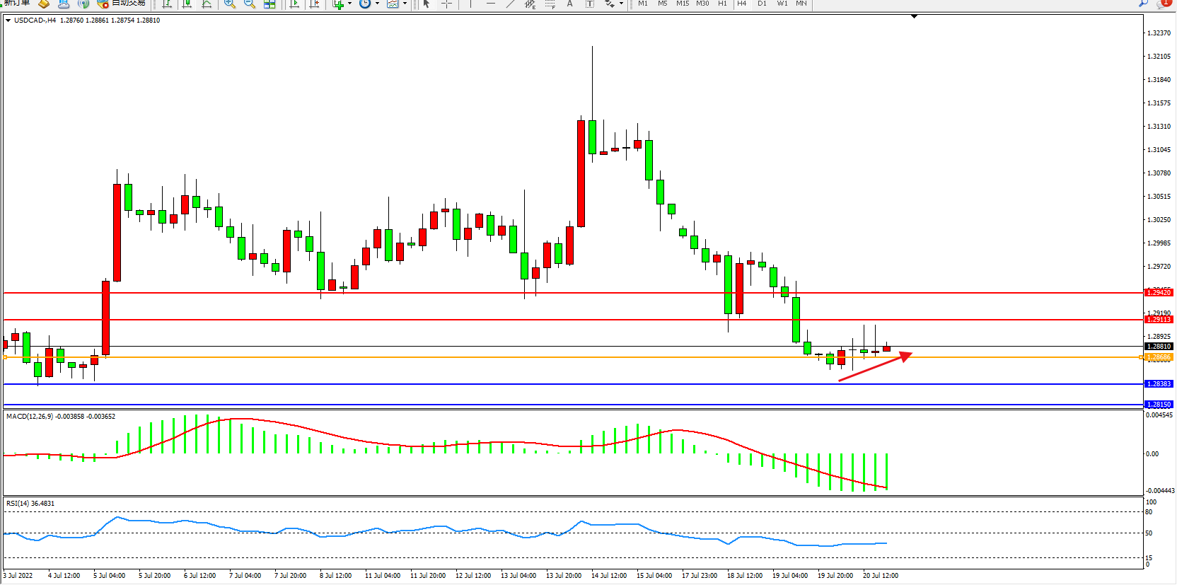 美元兑加元维持1.28810附近震荡,加拿大6月CPI加速升至40年新高,加拿大央行继续面临大幅加息的压力。汽油价格上涨是通胀上升的一个主要原因,而食品和住房成本正显示出放缓的迹象。