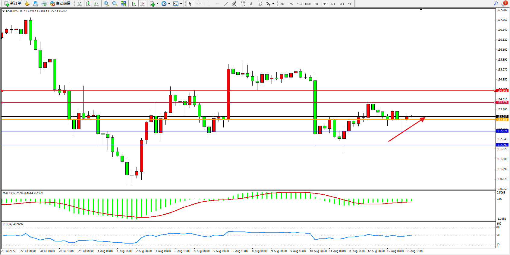 交易策略:133.155上方看涨,目标133.876、134.369