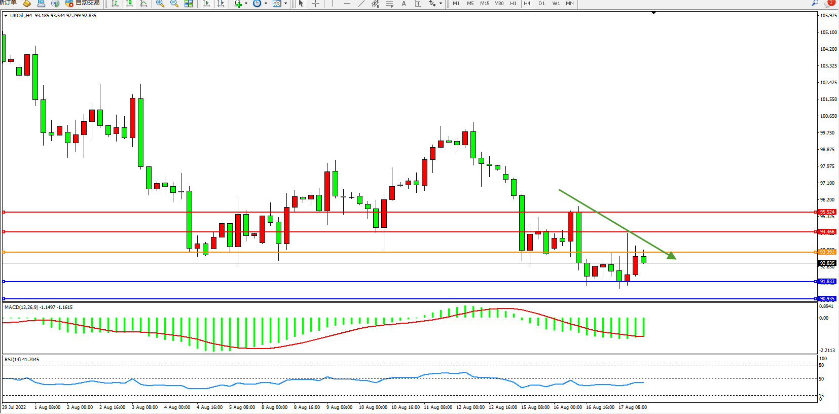 布油UKOil——4小时K线图显示: