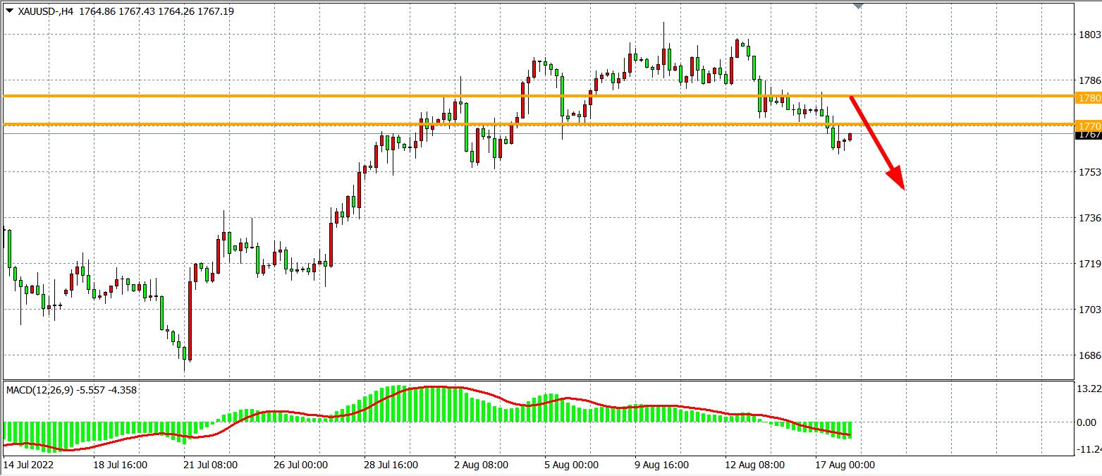 交易策略:在1770.00 之下看跌,目标1755.00           1738.00