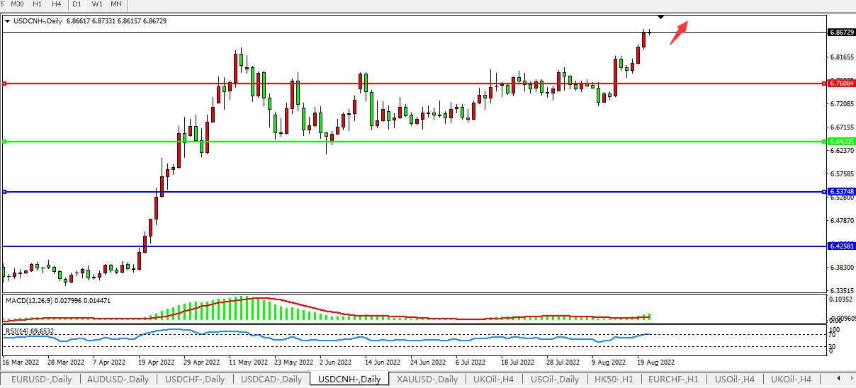 美元人民币USDCNH 日线图: