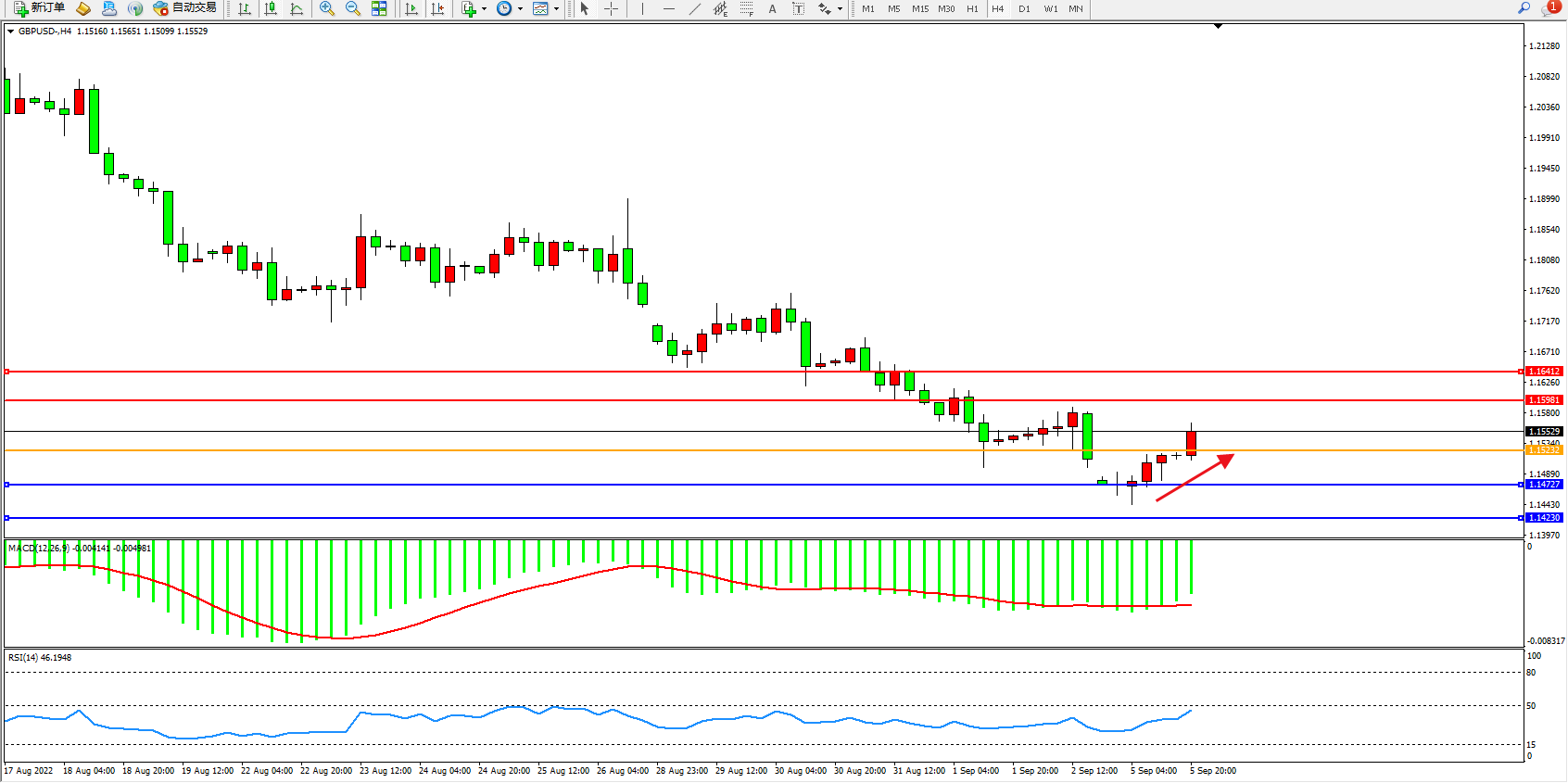 英镑美元GBPUSD ——4小时K线图显示: