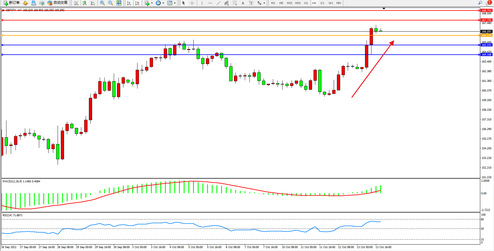 英镑兑日圆维持166.593附近震荡,英国财政大臣夸滕在参加国际货币基金组织年会期间对英国天空新闻表示,如果英国市场在周五临时购债计划结束后再次出现波动,英国央行将承担责任,撤回该计划后发生的任何动荡"都是行长贝利的事"。