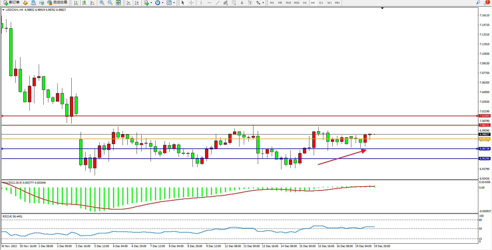 交易策略:6.98150上方看涨,目标7.00131、7.01503