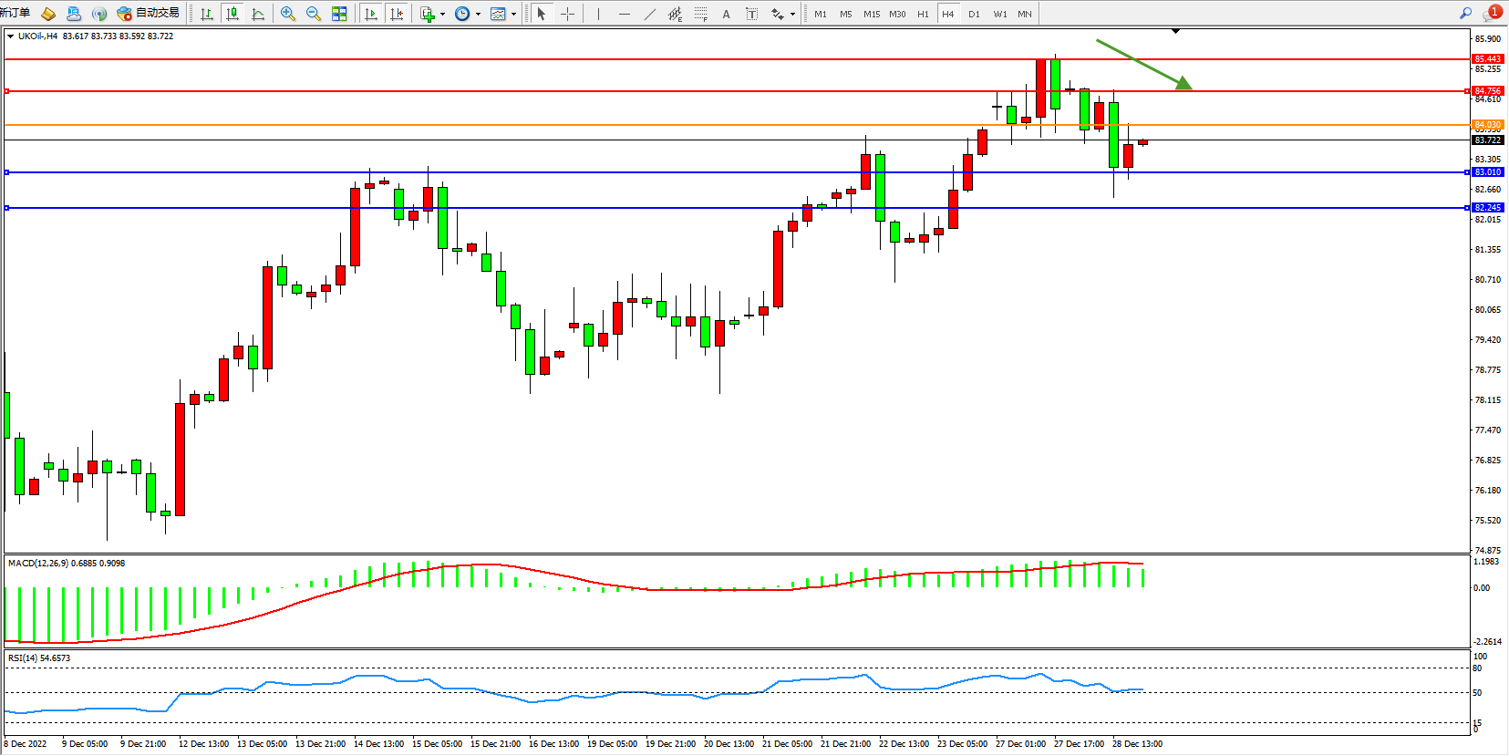 布油UKOil——4小时K线图显示: