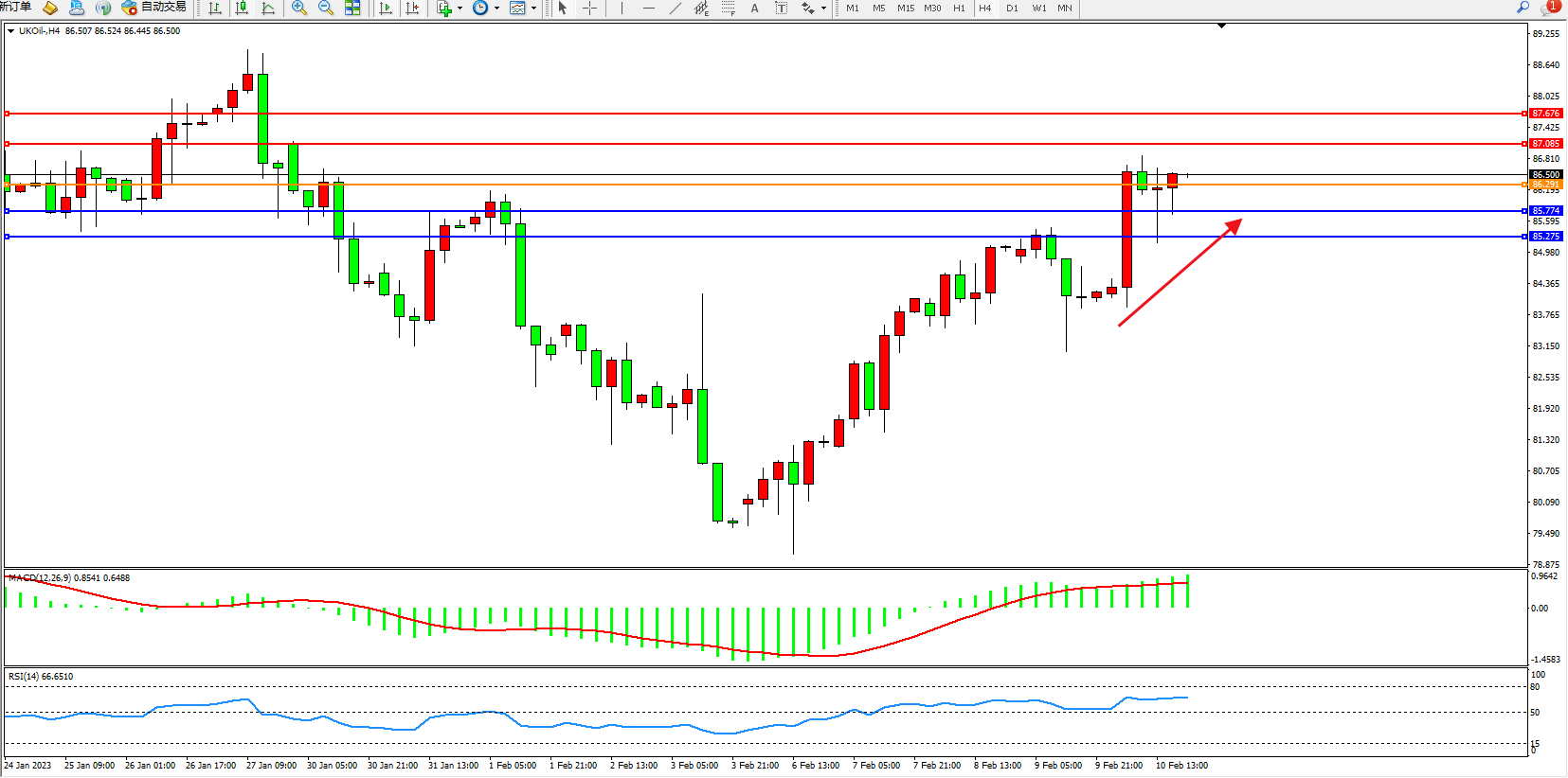 4小时图看:高位多头动力维持震荡拉升,市场多头情绪涌现,短期有继续向上移动中,MACD指标处于多头区域维持震荡,RSI指标处于多头区域维持整理;