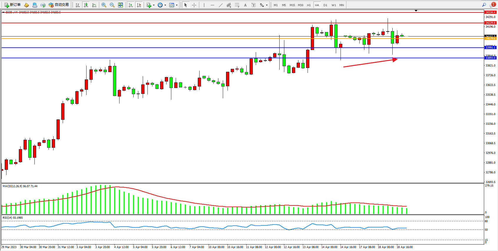 道琼斯指数4月18日(周二)收盘下跌10.78点,跌幅0.03%,报33976.40点;美国3月新屋开工总数年化 142万户,预期140万户,前值145万户。美国3月份新屋开工总数下降,多户住宅项目的回落抵消了单户住宅建设的回升