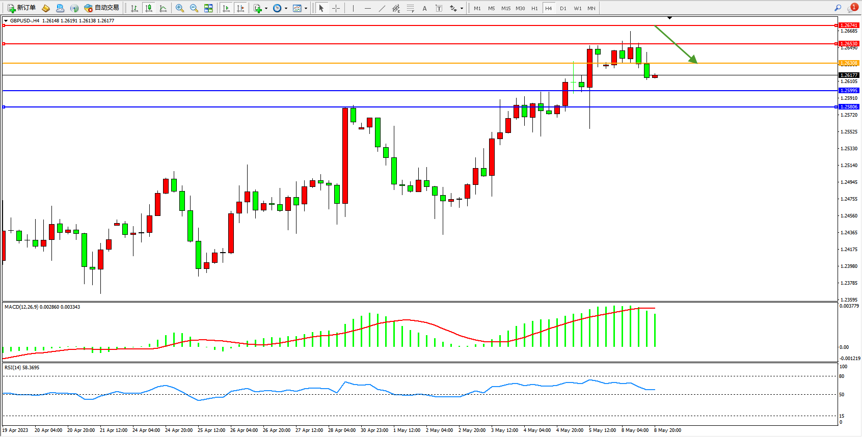 英镑美元GBPUSD ——4小时K线图显示: