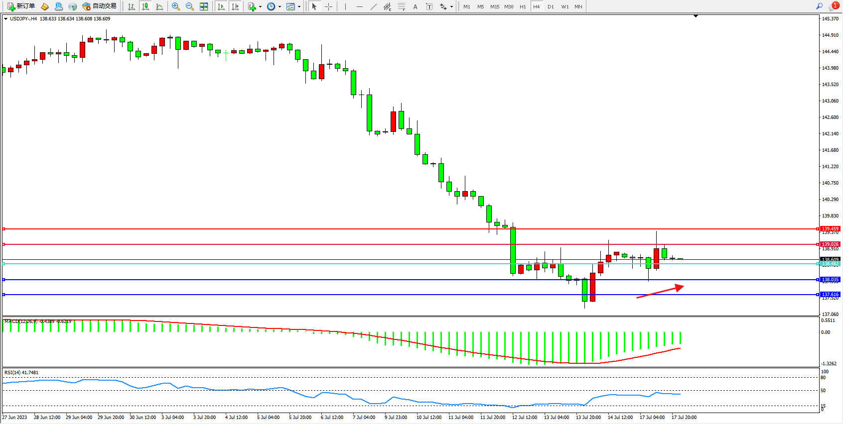 交易策略:138.482上方看涨,目标139.026 139.459