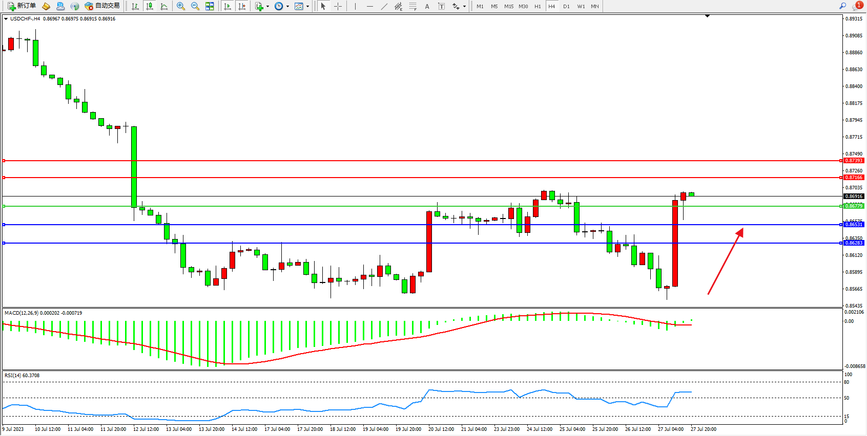 交易策略:0.86779上方看涨,目标0.87166 0.87393