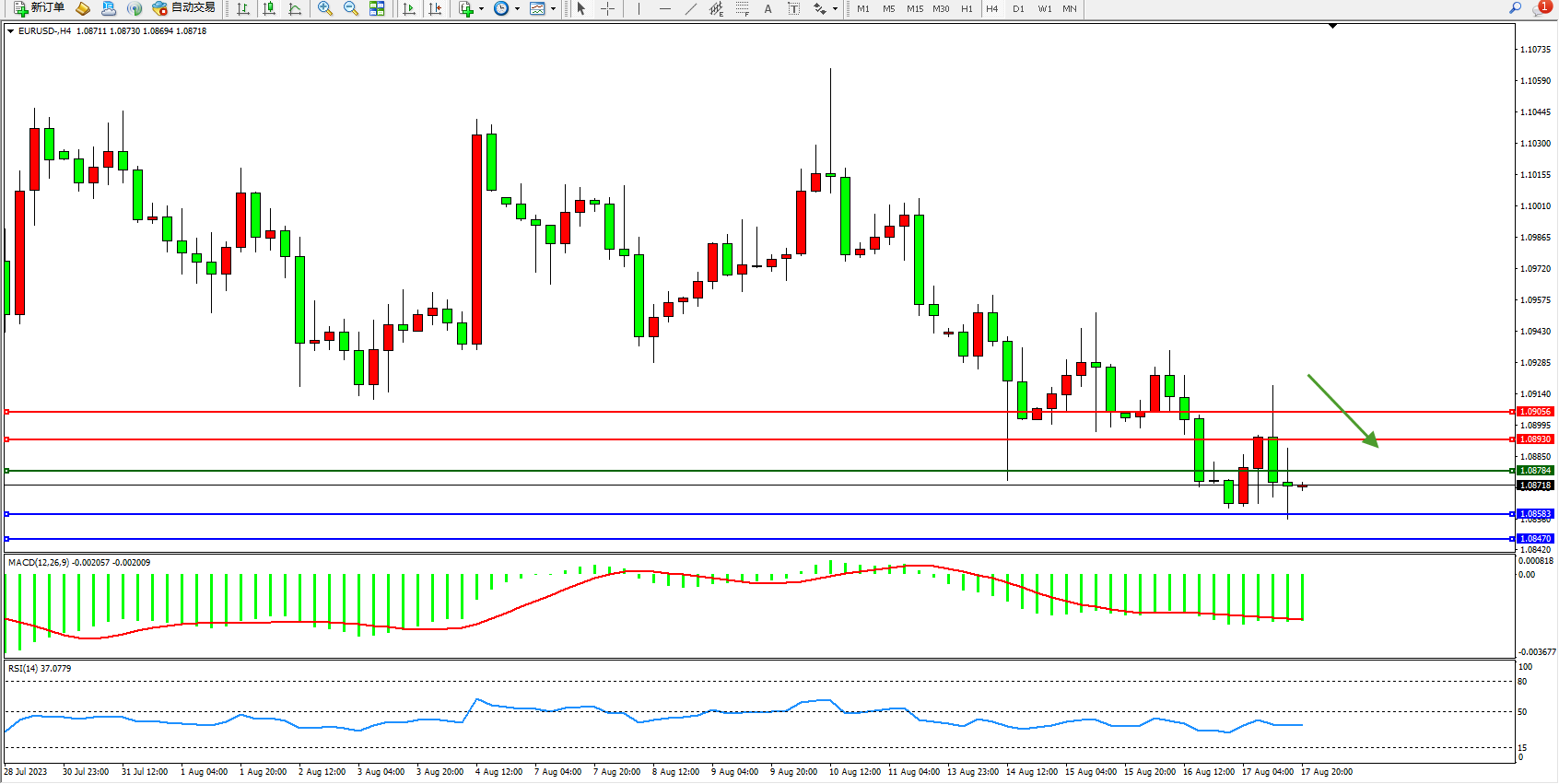 交易策略:1.08784下方看跌,目标1.08583  1.08470