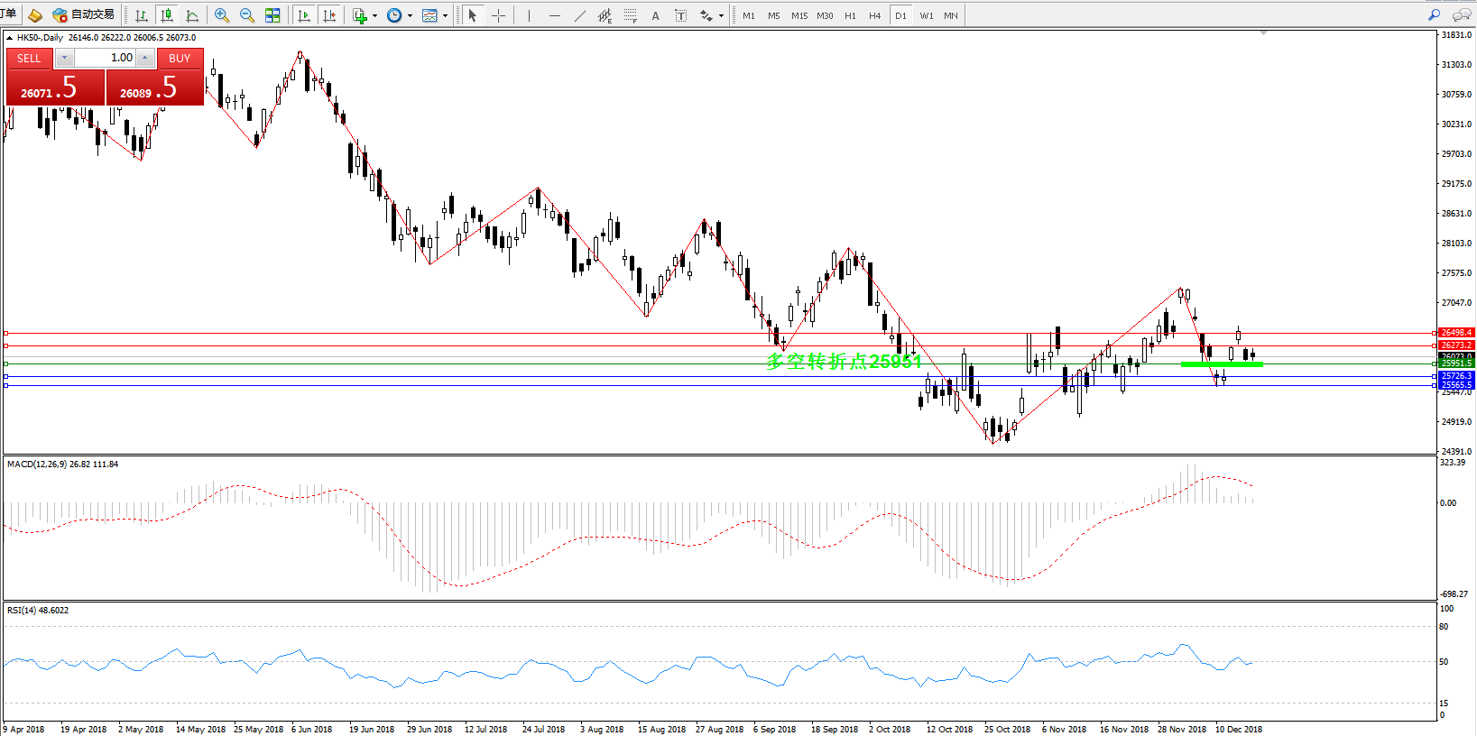 恒指HK50 ——日K线图显示: