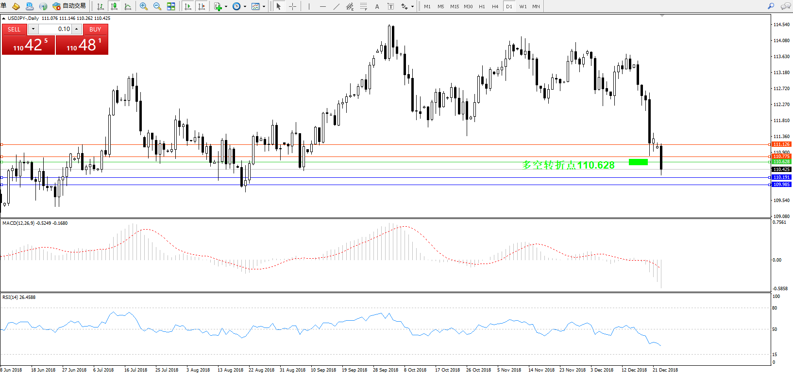 交易策略:110.628下方看跌,目标110.191109.985