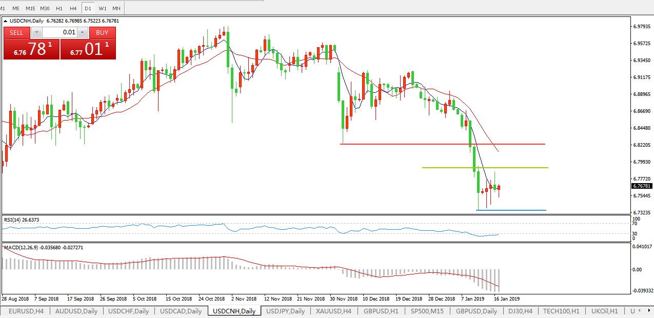 美元兑人民币USDCNH日线图: