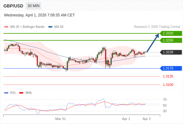 在 1.3170 之上,看涨,目标价位为 1.3290 ,然后为 1.3320 。