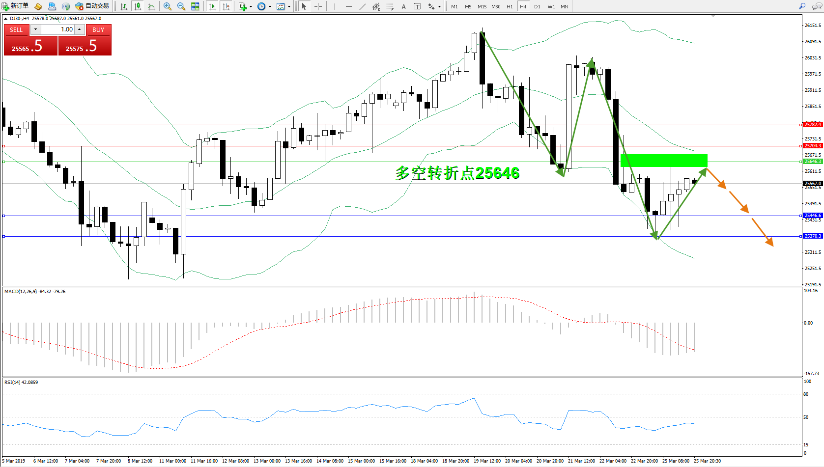 交易策略:25646下方看跌,目标25446、25370