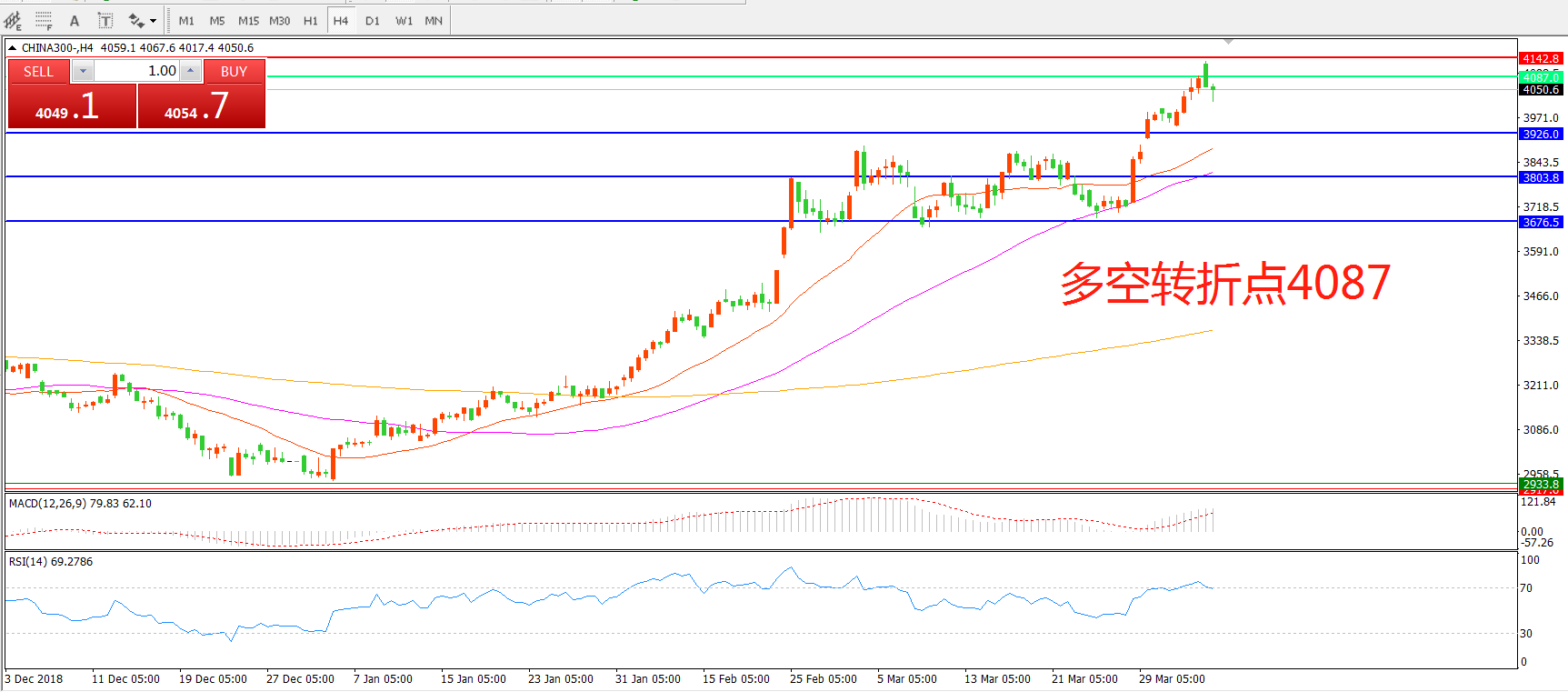 多空转折点:4087.00