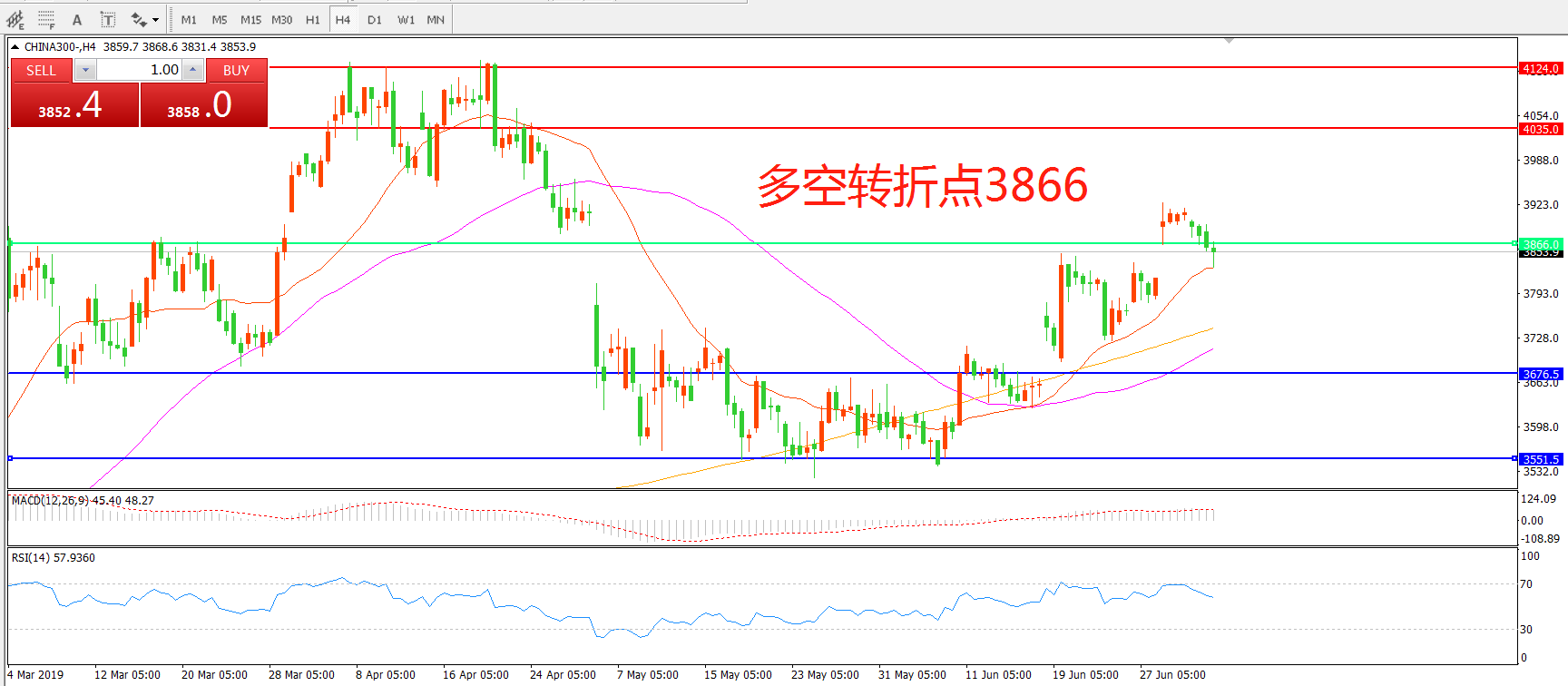 4小时图看,沪深300指数触碰3900附近后震荡回落,但均线系统依然呈现多头排列,MACD红柱增加,RSI指标走平,日内延续震荡上行概率较大。