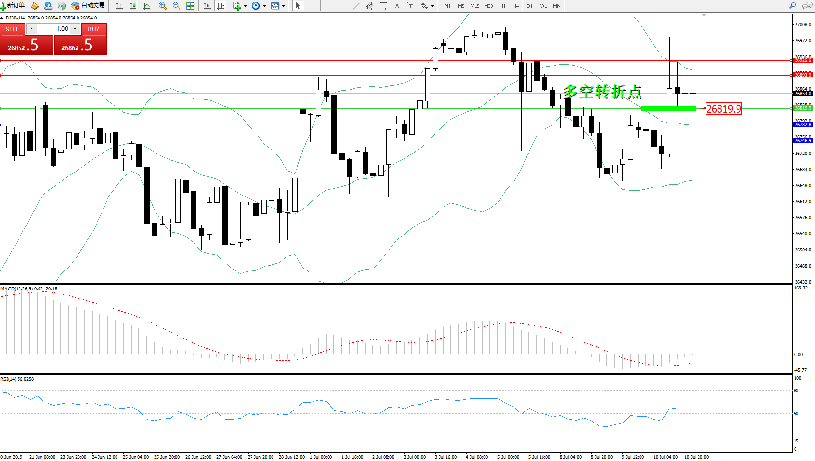 道琼斯指数7月10日(周三)收盘上涨76.70点,涨幅0.29%,报26860.20点。美联储公布的6月会议纪要显示,美联储官员认为放松货币政策的理由越来越充分。虽然整体金融状况仍对经济增长构成支撑,但这种状况看上去有个重要前提,就是预期美联储将在近期内放松政策以帮助抵消全球前景不确定性和其他下行风险对经济增长的拖累。