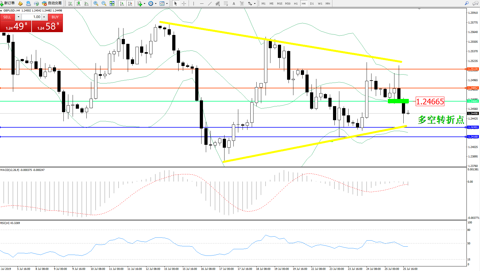 交易策略:1.24665下方看跌,目标1.24301、1.24168