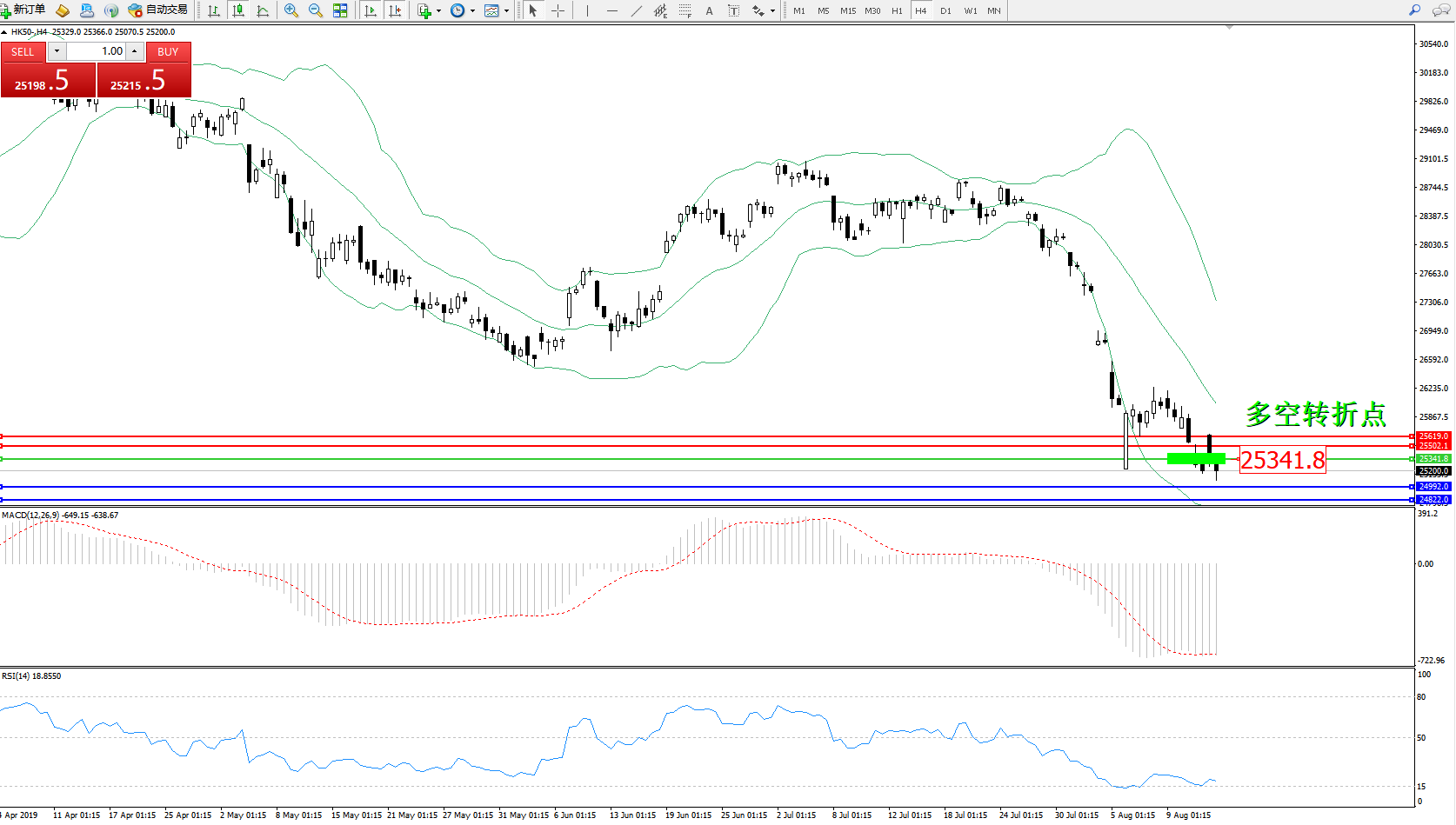 恒指HK50 ——4小时K线图显示: