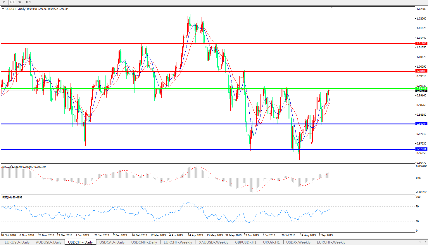 美元兑瑞郎USDCHF 日线图:
