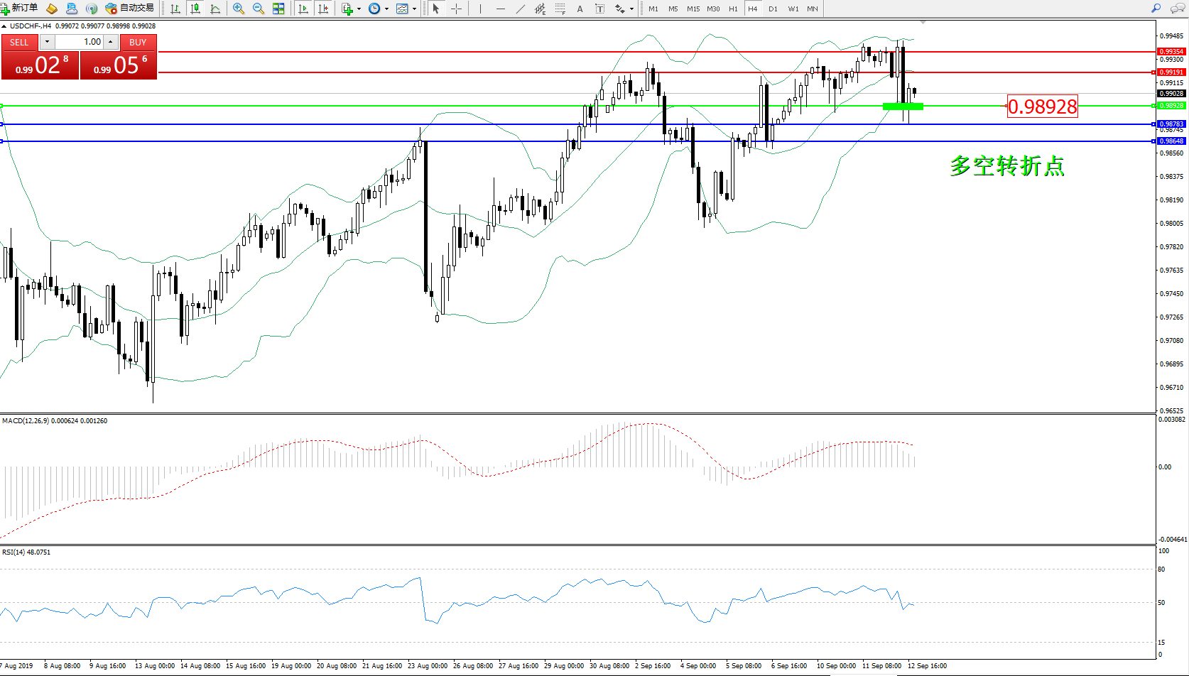 交易策略:0.98928上方看涨,目标0.99191、0.99354