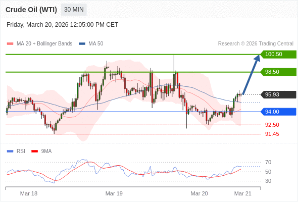 交易策略: 在 94.00 之上,看涨,目标价位为 98.50 ,然后为 100.50 。