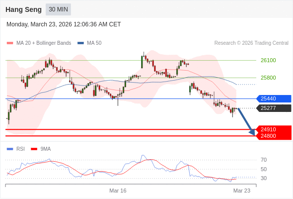交易策略: 在 25440 之下,看跌,目标价位为 24910 ,然后为 24800 。