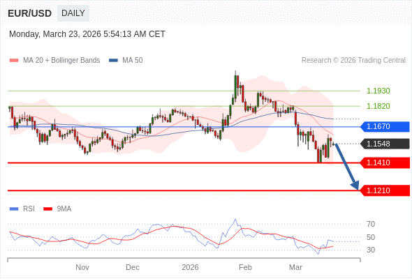 在 1.1670 之下,看跌,目标价位为 1.1410 ,然后为 1.1210 。