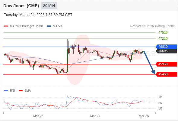 在 46810 之下,看跌,目标价位为 45950 ,然后为 45450 。