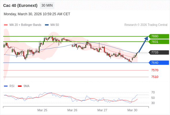 在 7640 之上,看涨,目标价位为 7831 ,然后为 7880 。