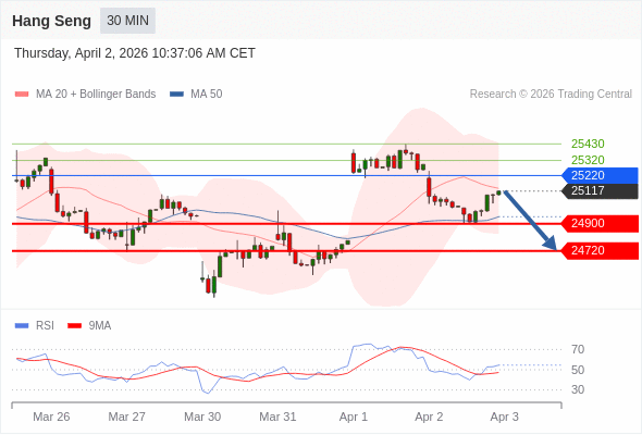 在 25220 之下,看跌,目标价位为 24900 ,然后为 24720 。