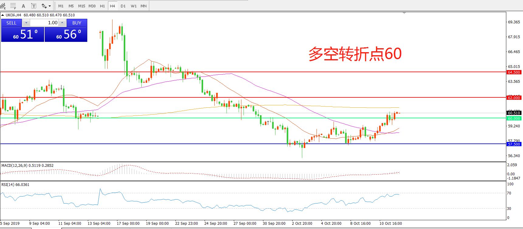 多空转折点:60.00