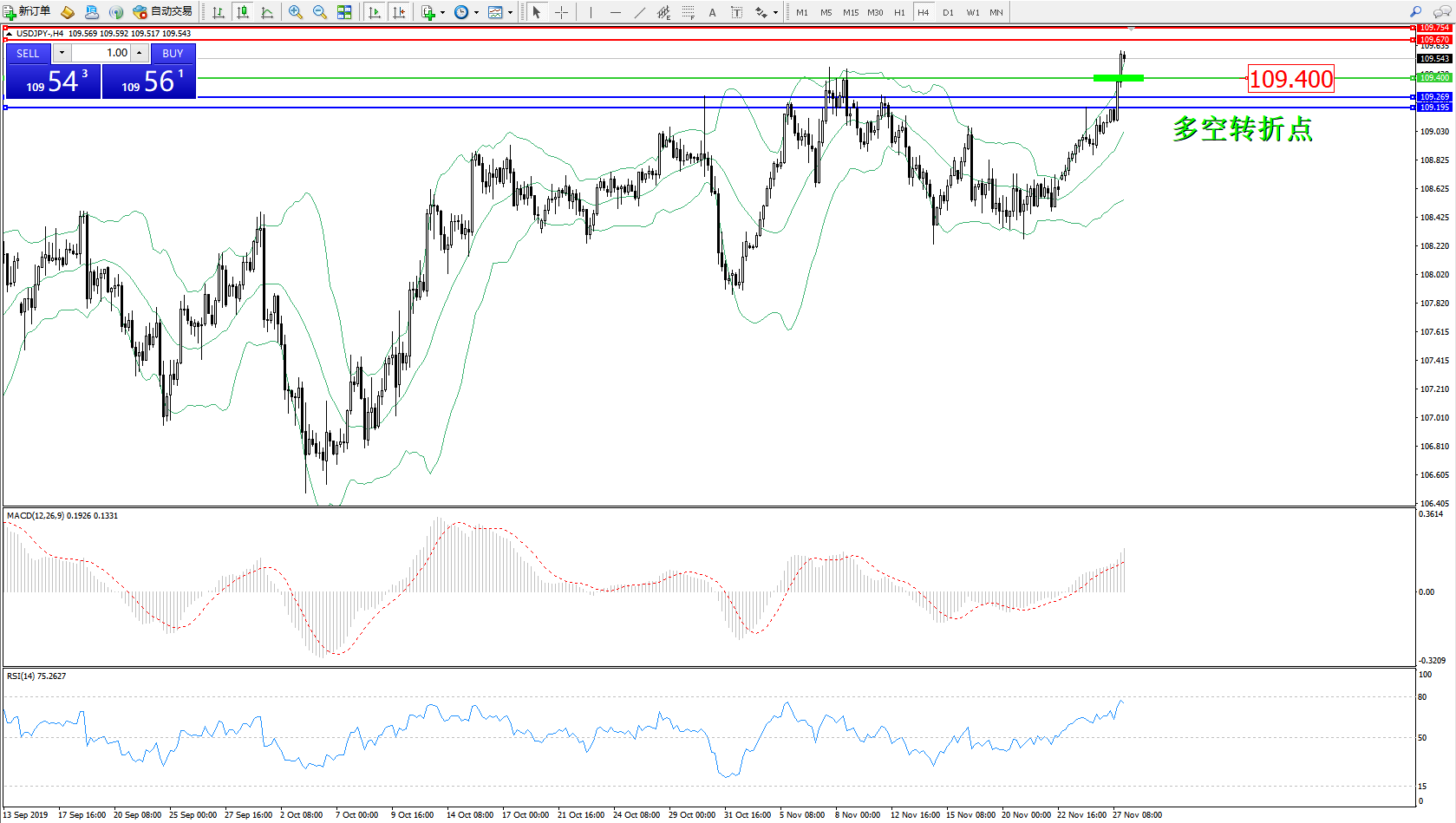 交易策略:109.400上方看涨,目标109.670、109.754