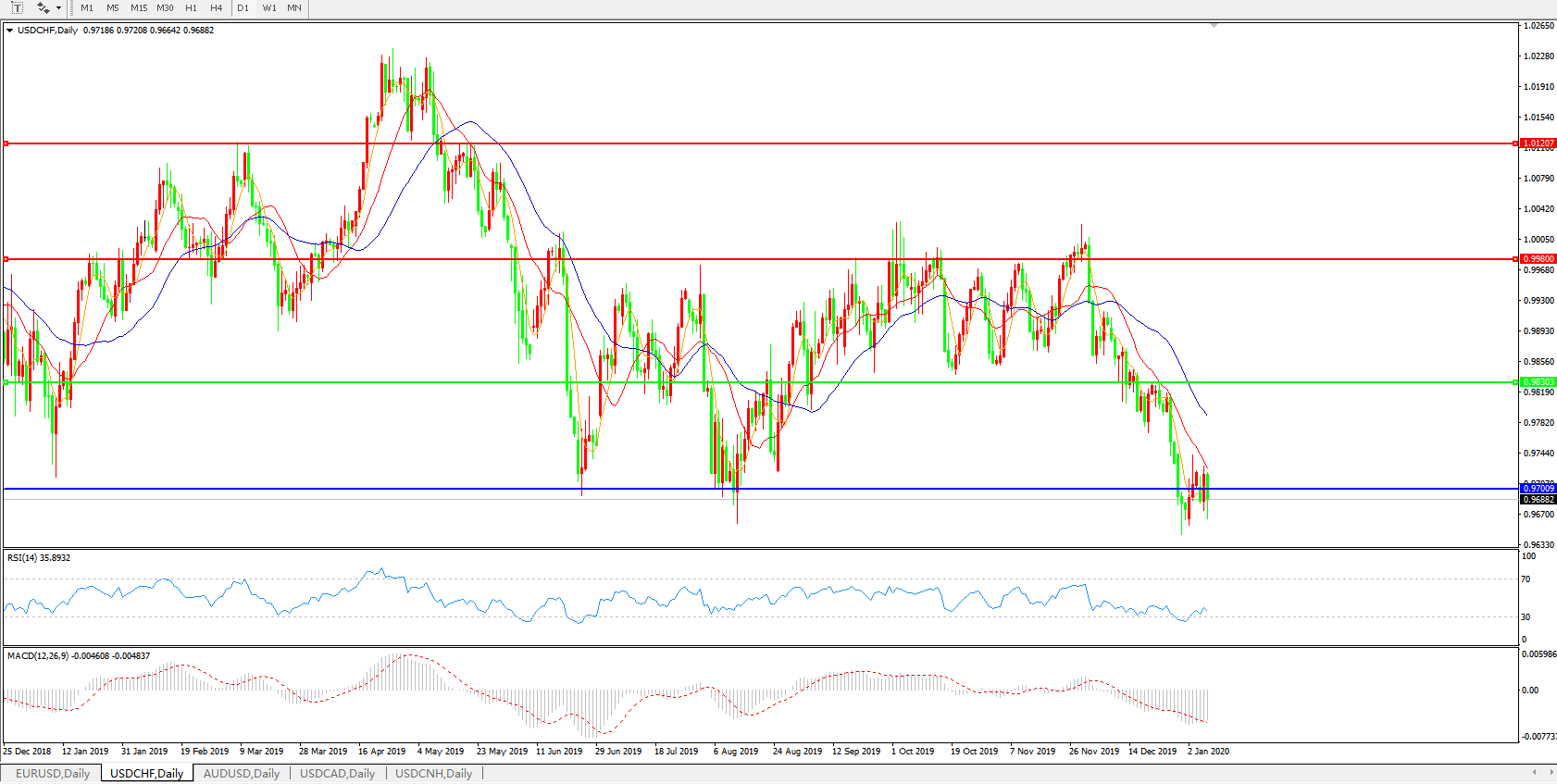 美元兑瑞郎USDCHF 日线图: