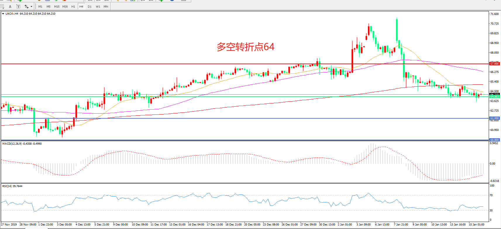交易策略:在64.00之下看跌,目标62.00 60.00