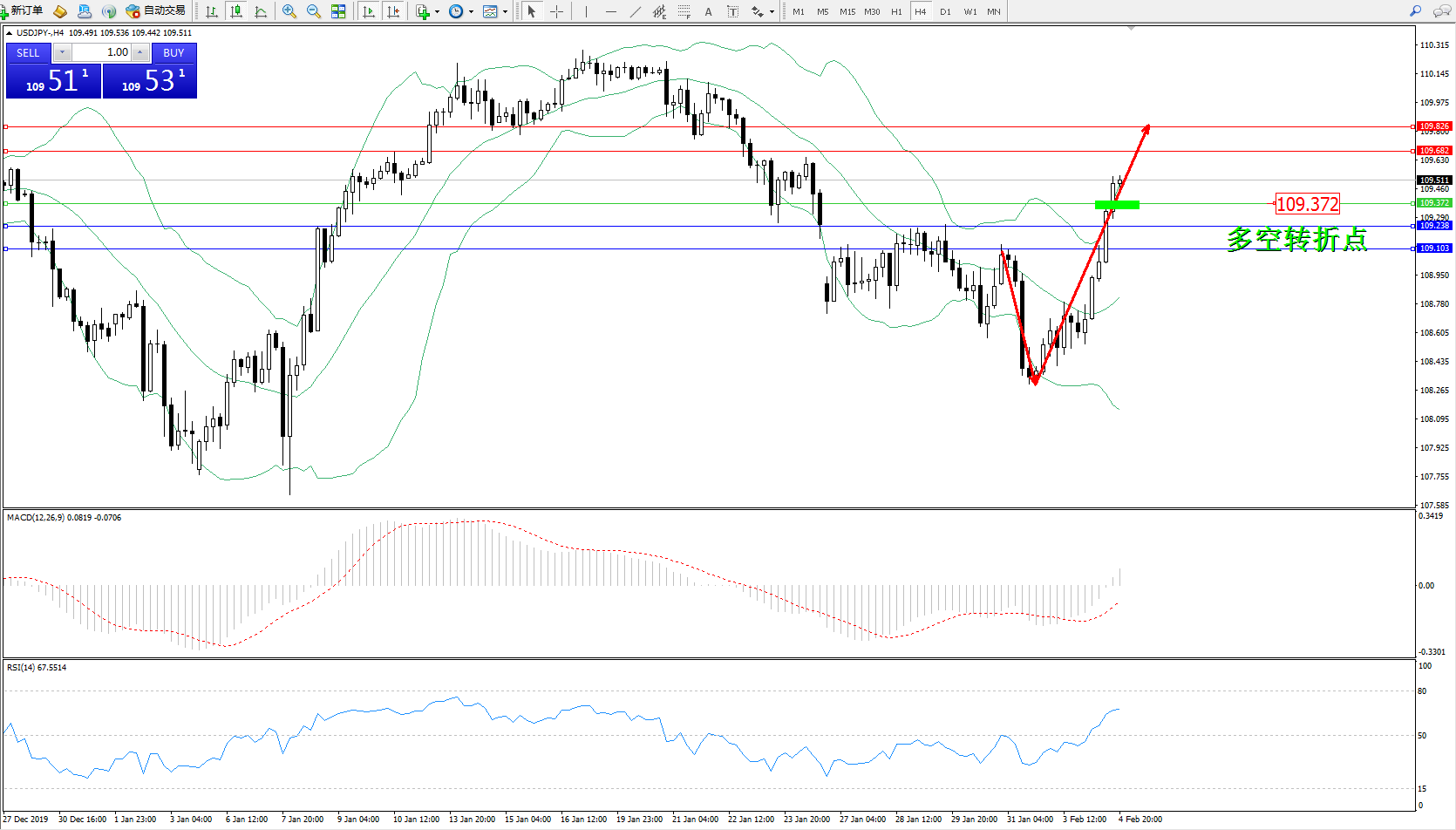 交易策略:109.372上方看涨,目标109.682、109.826