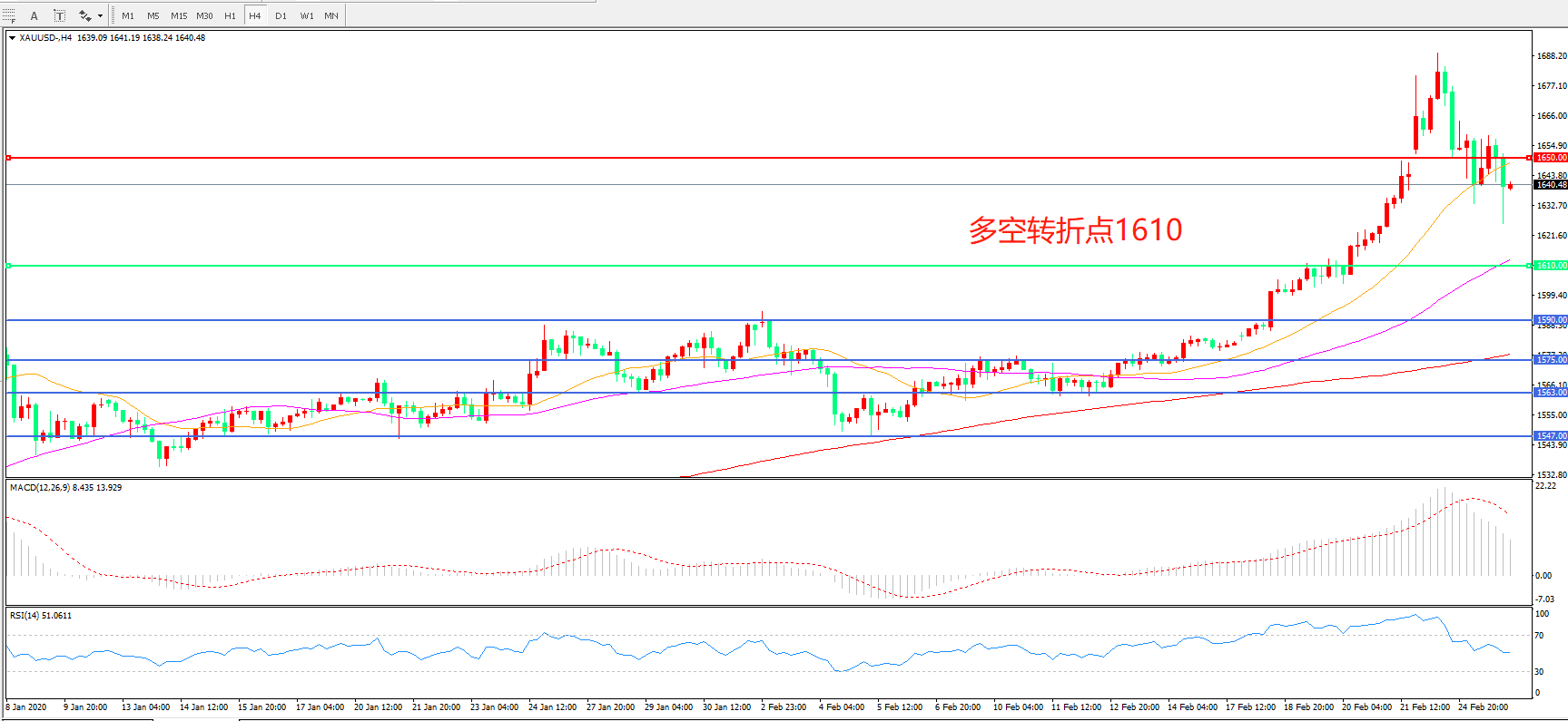 多空转折点:1610.00