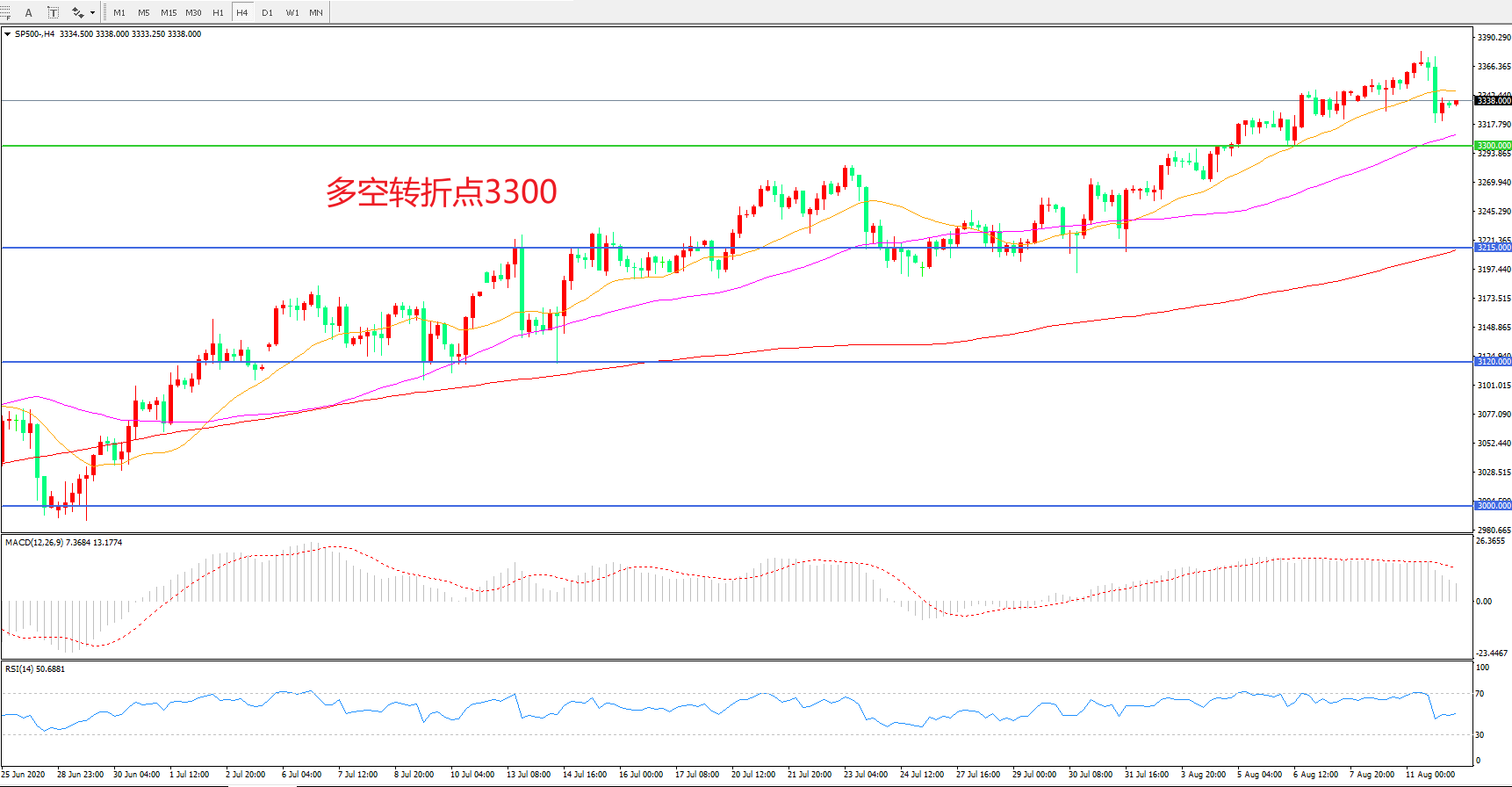 多空转折点:3300.00