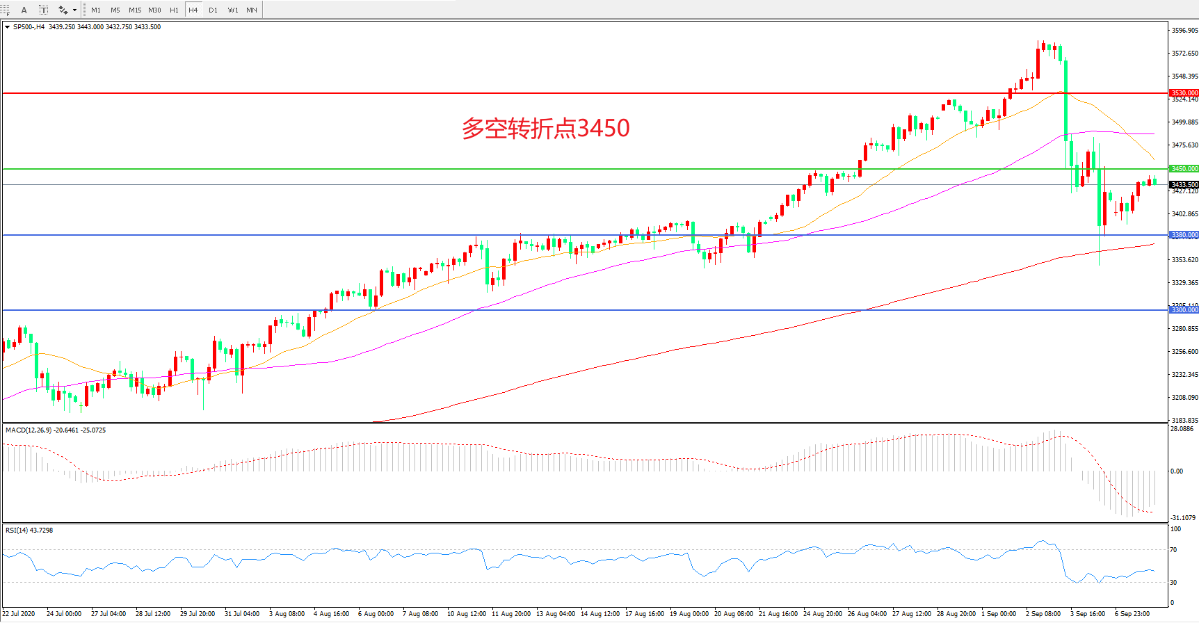 周一(9月7日),美国市场因劳动节而假期休市,这令金融市场的整体表现较为平静,标普500震荡上行,收报3437.25点。眼下,新冠疫情仍在美国蔓延,新一轮财政刺激措施却一再搁浅,多空因素相互交织,使的市场波动性不断加剧,在美国总统大选前的最后一段时间,市场有陷入更大波动的可能性。
