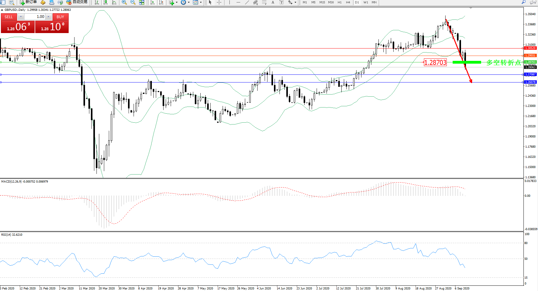 交易策略:1.28703下方看跌,目标1.27087、1.26078