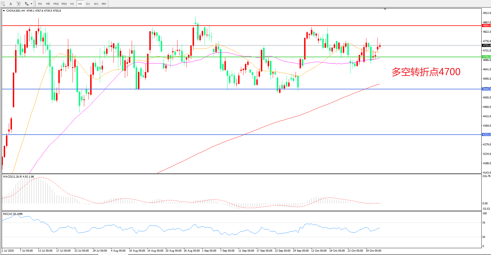 多空转折点:4700.00