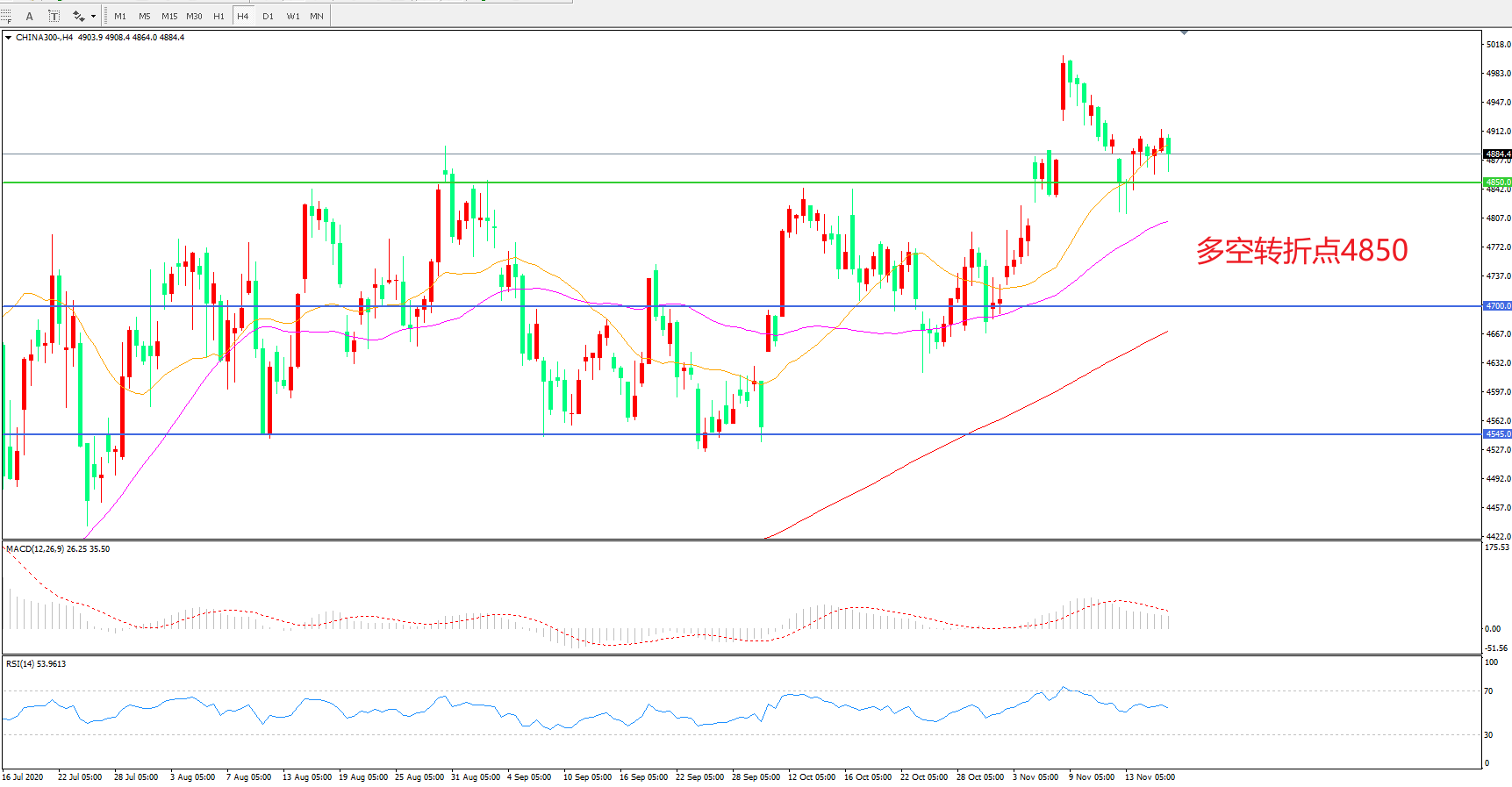 交易策略:在4850.00之上看涨,目标5000.00 5150.00