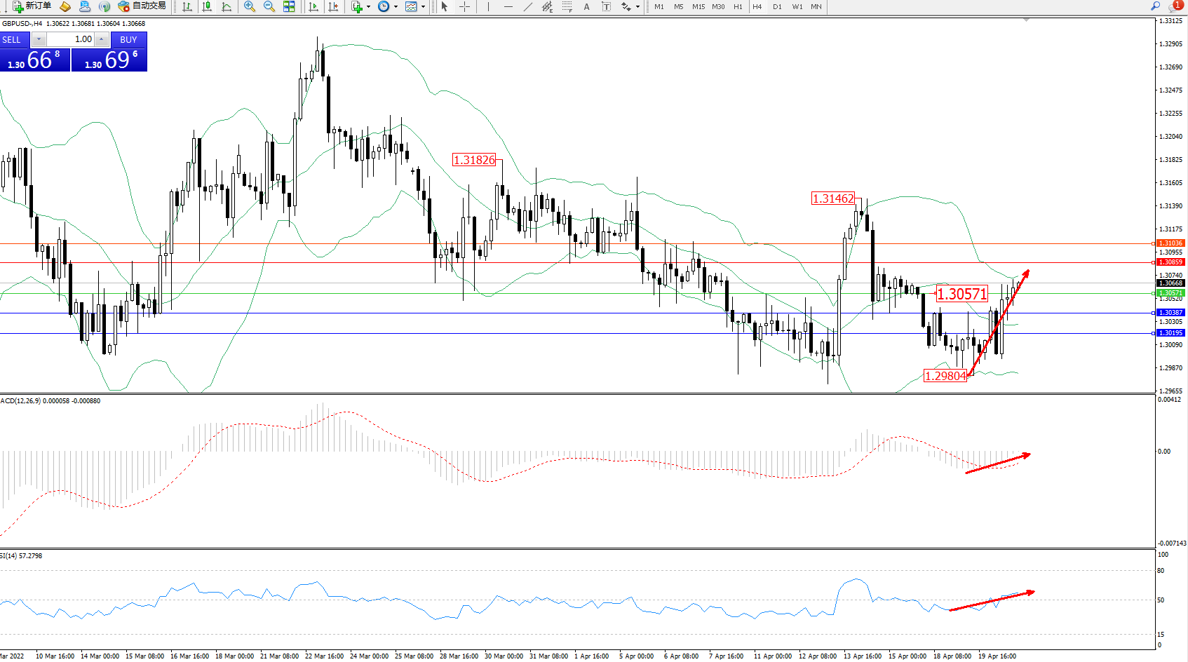英镑美元GBPUSD ——4小时K线图显示: