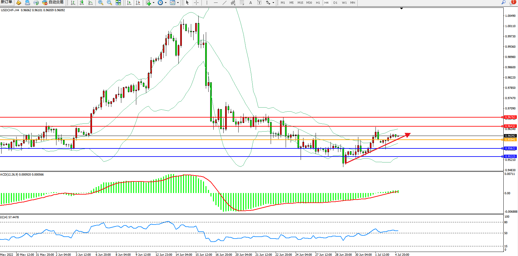 交易策略:0.95941上方看涨,目标0.96432、0.96763