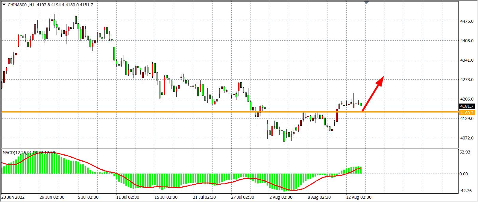 1小时图看,沪深300依旧盘踞于4160之上,同时MACD于零轴之上量能持续放大,显示短期多头动能依旧强劲,支撑4160有效,在该位之上看反弹4250-4300