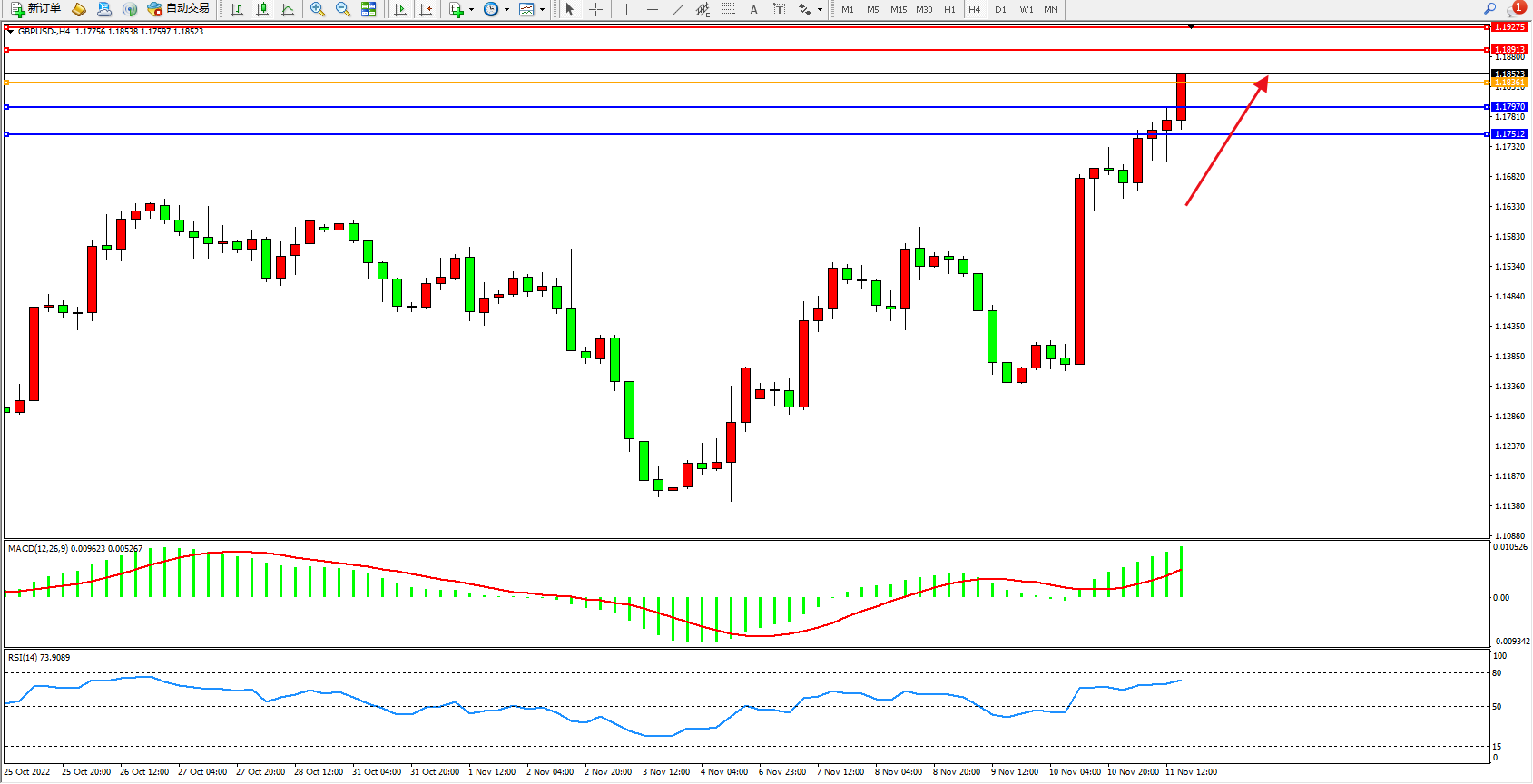 英镑美元GBPUSD ——4小时K线图显示: